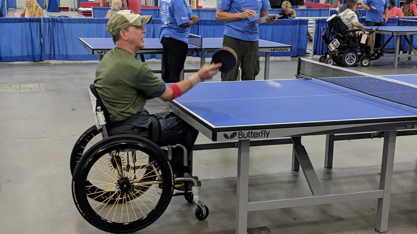Rory Cooper wins “gold” at the 2021 US National Veterans Wheelchair Games using the chair that he and his colleagues invented and built for the sport. (Photo: Courtesy of Rory Cooper)